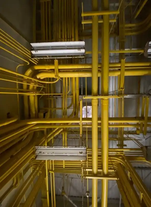 Эти трубопроводы в техническом помещении выглядят как та самая заставка Windows