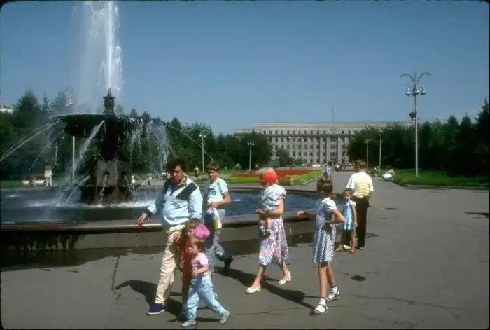 Фонтан в сквере Кирова здание обкома на заднем плане