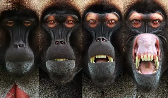 Эпичный переход мимики обезьяны из спокойного состояния в состояние крайней ярости