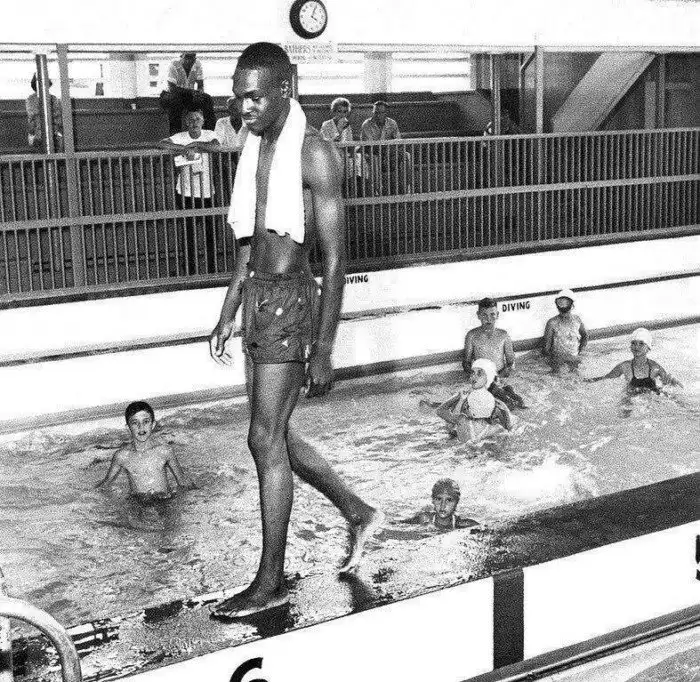 19-летний парень David Isom прошелся по бассейну для белых, после чего чиновники закрыли объект. Флорида, июнь 1958 года.
