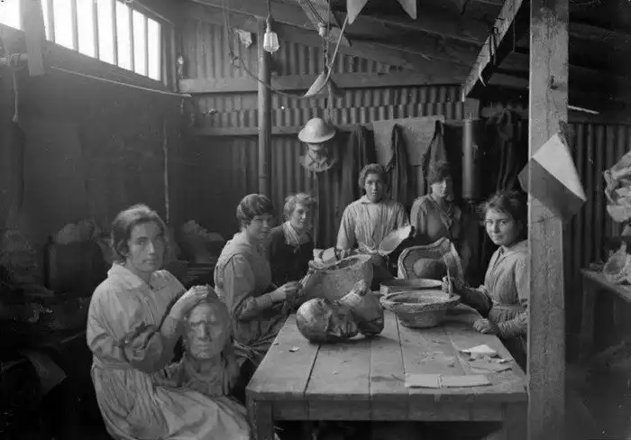 Женщины делают фальшивые головы, чтобы помочь вычислить снайперов на фронте, Первая мировая.