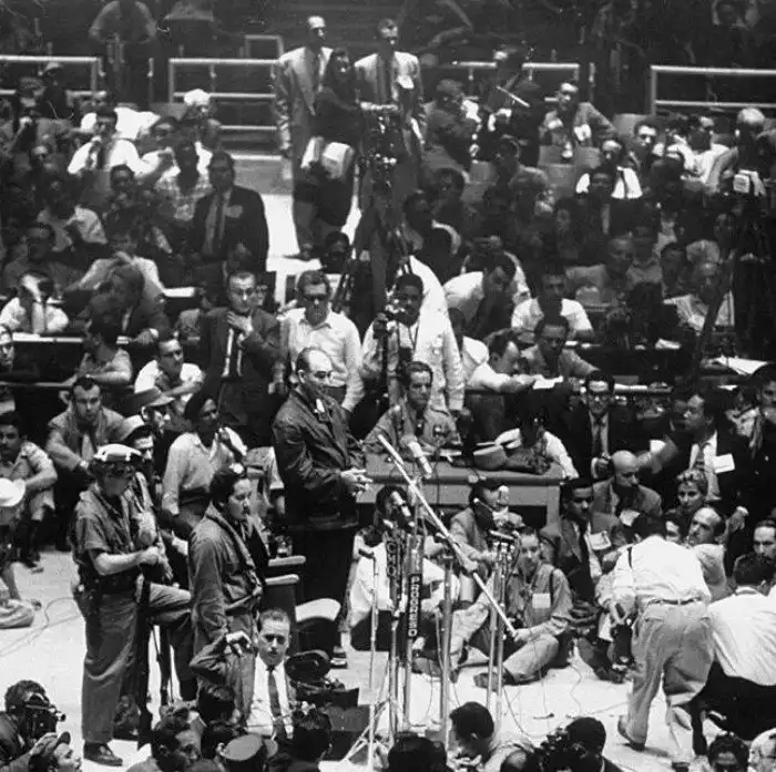 Студенты USC с нижним бельем сокурсниц, США, 1952 год. Panty raid — популярный у американских студентов в 1950–е розыгрыш в форме набега на женские общежития за соответствующими трофеями