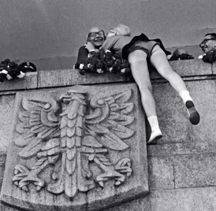 Девушка целует первого секретаря ЦК Польской объединённой рабочей партии Владислава Гомулка, Польша, 1966 год.