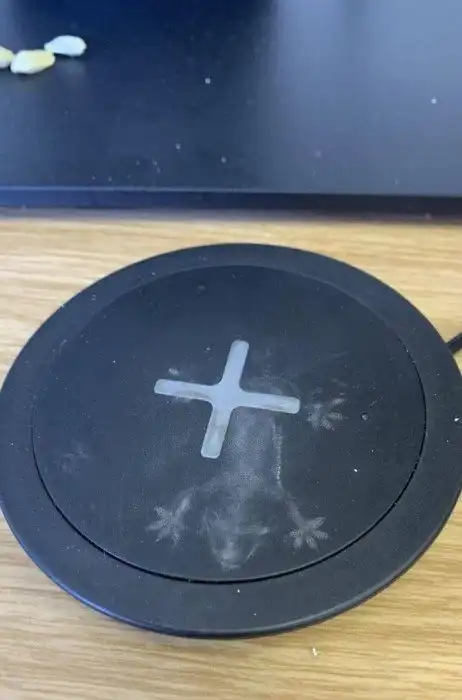 «Ящерица упала с потолка и оставила этот пыльный след на моем беспроводном зарядном устройстве»