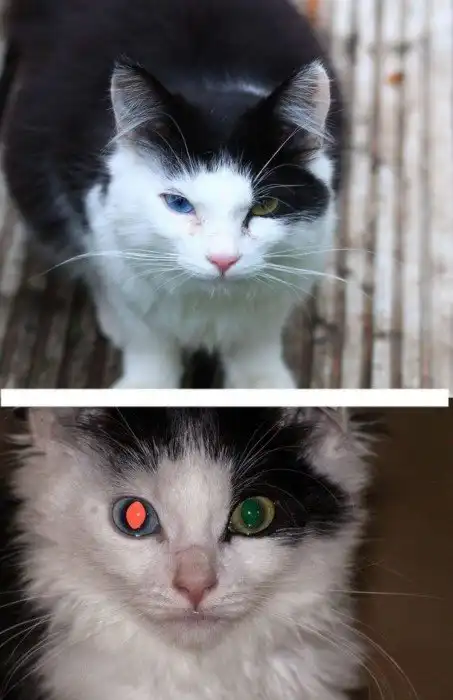 «У моего кота Домино гетерохромия, побочный эффект которой заключается в том, что его глаза отражают свет по-разному, заставляя его выглядеть как Терминатор!»
