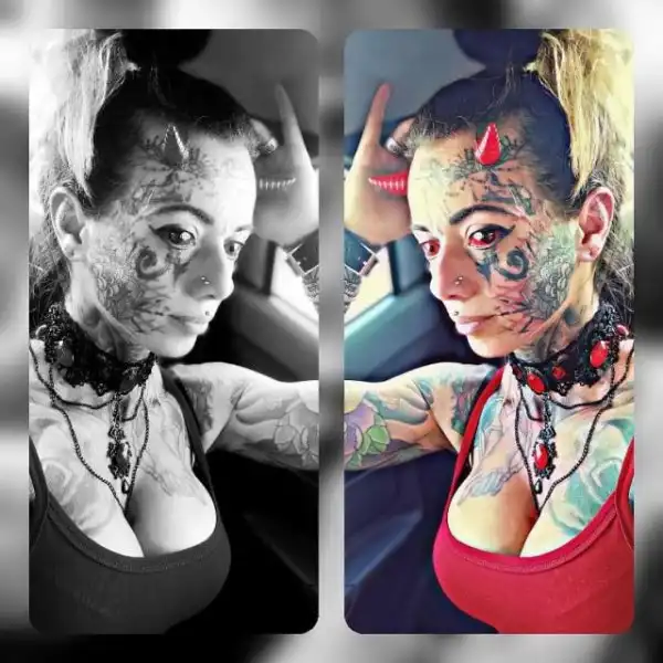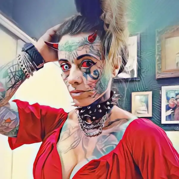 Сегодня Кэрол 35 лет и она является специалистом по пирсингу и другим модификациям тела, пишет Daily Star. Теперь она выглядит так, будто бразильянка действительно явилась на планету из преисподней. Чего только девушка не сделала, чтобы выглядеть как сестра "Хеллбоя". Она раздвоила себе язык, а также сделала татуировки на глазных яблоках, покрасив их сначала в жёлтый, а затем в красный цвет. Осуществив свою цель, женщина решила помочь своим инфернальным братьям и сестрам достичь демонического образа. В ее салон приходит много желающих сделать себе какую-либо бодимодификацию.