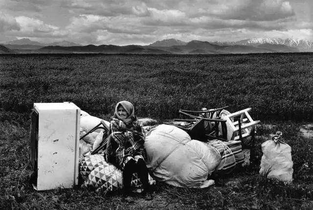 Жительница Армении сидит со всем её имуществом. Карабахский конфликт, Кубатлы, Азербайджанская ССР, май 1991 года.