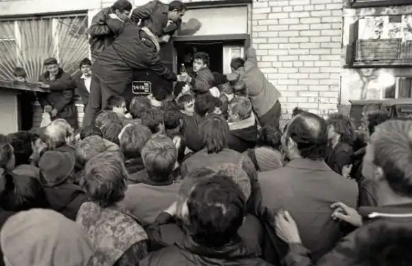 Сербский боец выносит из боя раненого товарища. Потом он отправился за другим и был убит. Вуковар, 1991 год.