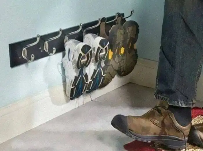 "Вешалка, прибитая вдоль пола, поможет аккуратно хранить туфли".
