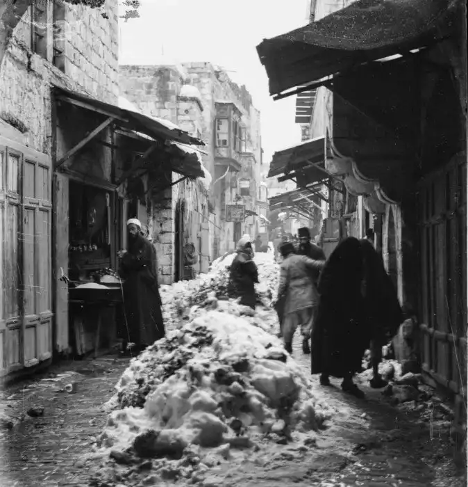Крупная снежная буря прошлась по Иерусалиму 25 февраля 1921 года, попав на фотоснимки. Это крайне редкое зрелище здесь, где снег выпадает каждые три-четыре года. В то время, после Первой мировой войны, британцы одержали победу над османами на Ближнем Востоке.