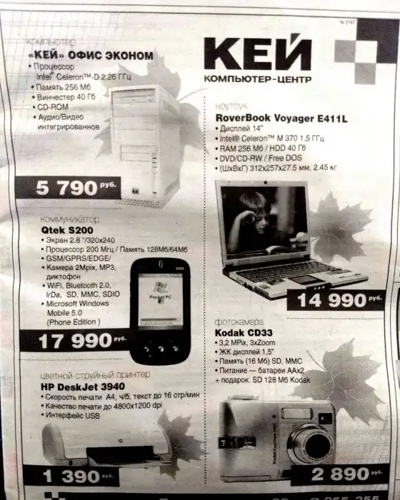 А вот тогдашний ассортимент техники. 256 Мб оперативки смотрятся нынче, конечно смешно. А у кого-нибудь был такой "коммуникатор"?