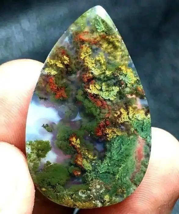 16. "Это моховой агат из Индонезии. На самом деле "мох" - это включения железа и других минералов, из-за которых кажется, будто внутри камня есть секретный лес"