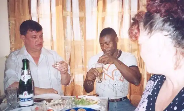 Лидер читинской ОПГ "Ключевские" Евгений Жаров, предпочитающий водку, с неодобрением смотрит на африканца, размешивающего шампанское.