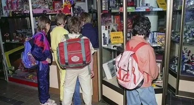 Школьники выбирают игрушки и приставки после уроков, 1993 год.