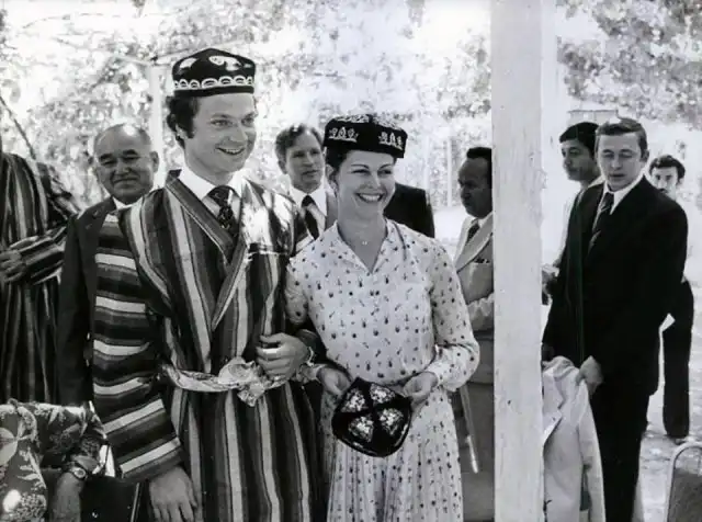 Король Швеции Карл XVI Густав и его жена Сильвия с визитом в колхозе "Ленинизм" под Ташкентом, 1978 год.