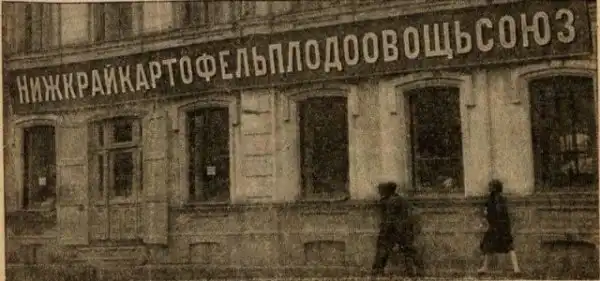 Здание Нижегородского предприятия с мудрёным названием «Нижкрайкартофельплодоовощьсоюз». СССР, 1929 год.