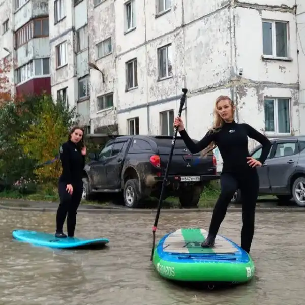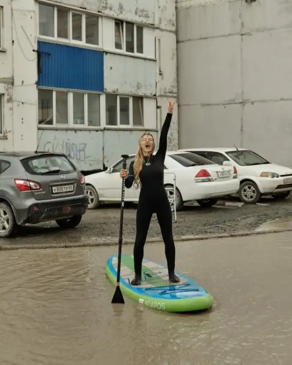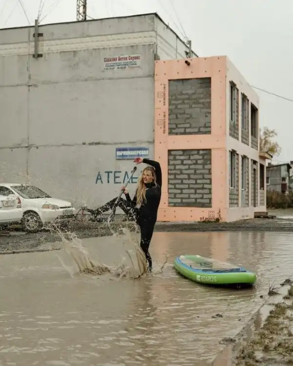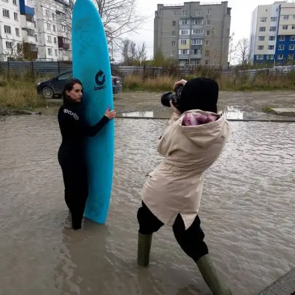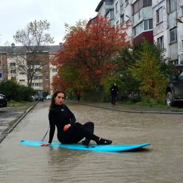 Мы уже рассказывали про Instagram лужи на Тихоокеанской улице в Южно-Сахалинске, где жители публикуют забавные кадры из жизни двора. Сегодня же там появилась фотосессия девушек на досках для sup-серфинга. Помимо красоты - сделано это для привлечения внимания к проблеме данной лужи. К слову, решить ее не могут уже 25 лет! Недавно в пресс-службе мэрии заявили: в следующем году "достопримечательность" отремонтируют.