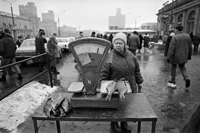 Торговля рыбой возле вокзала в Минске, 1991-92 гг.