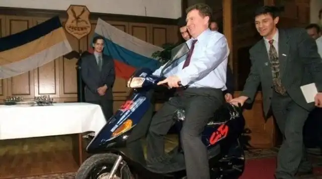 Владимир Жириновский въезжает в свой кабинет в Госдуме. Москва, 1996 год.