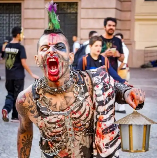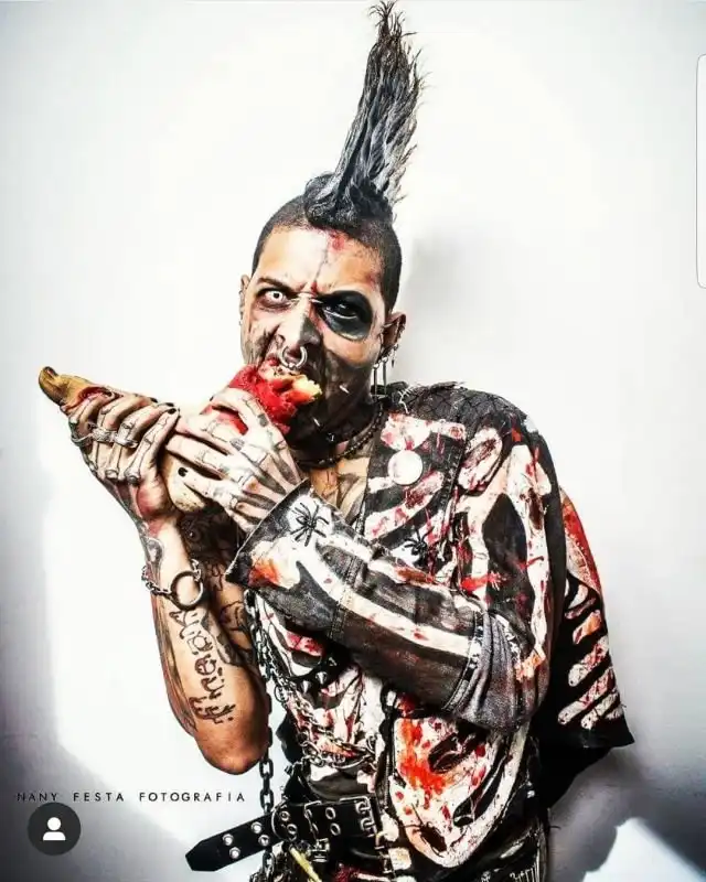 Зомби-апокалипсис еще не наступил, а этот парень уже подготовился. Нет, он не закупился провиантом и оружием, а также не стал обустраивать себе убежище. Он решил заранее смешаться с толпой и превратил себя в зомби. Парня зовут Андерсон Гарсия Родригес. Ему 31 год и он живет в столице Великобритании. Родригес подрабатывает актёром и моделью, а еще он является большим любителем панк-культуры, что, собственно, сразу бросается в глаза.