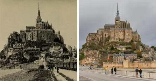 Мон-Сен-Мишель, Франция (1908 и 2016 годы)