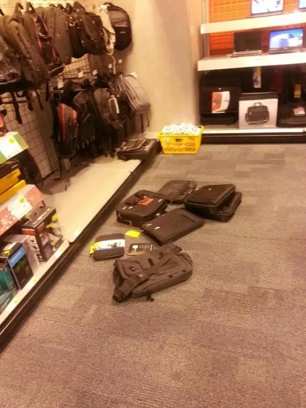Мало того, что кто-то повесил футболку не на место, так ещё и закрыл ею все товары