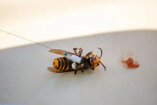 Поиск гнезда занял несколько недель. Энтомологи с помощью зубной нити прикрепили к телу одного из шершней-убийц электронное отслеживающее устройство, которое привело их к гнезду. Гнездо было изолировано, после чего из него выдули более 100 шершней.