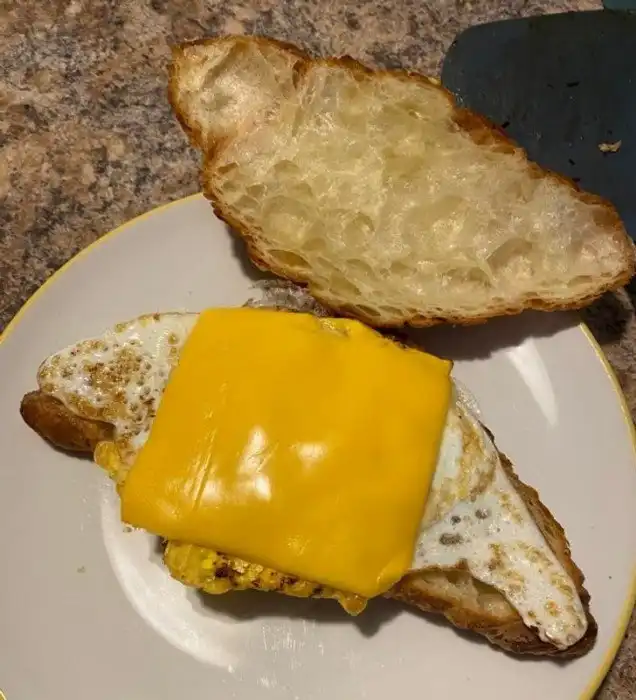 Яичница приняла такую форму, чтобы уместиться на круассан