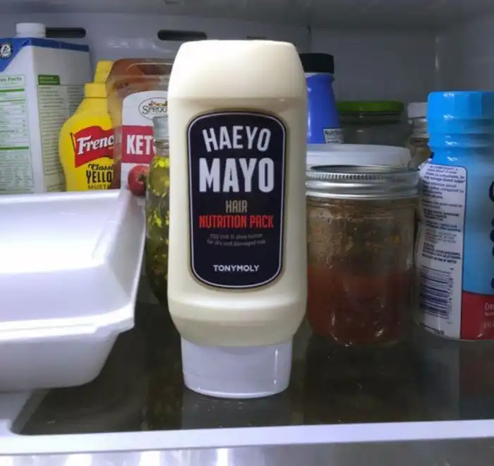 Надпись на бутылке: «Питательная маска для волос от Tony Moly».