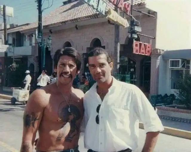 Дэнни Тpexо и Антонио Бандерас на съемках фильма "Отчаянный", 1994 год.