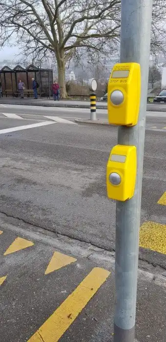 9. Эта кнопка на пешеходном переходе, которая заставляет автобус ждать вас, если вы находитесь на другой стороне дороги
