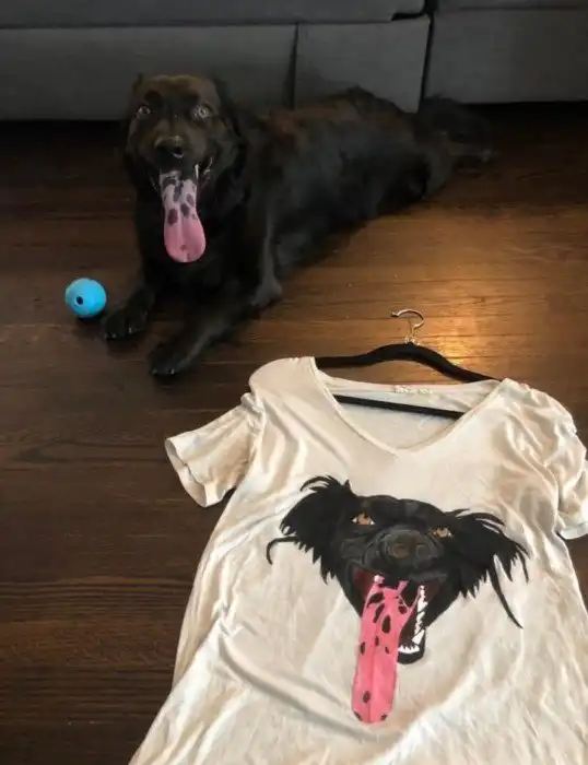 «Нарисовала на футболке свою собаку, взяв за основу фото годичной давности. А сегодня заметила, что пятна у нее на языке поменялись»