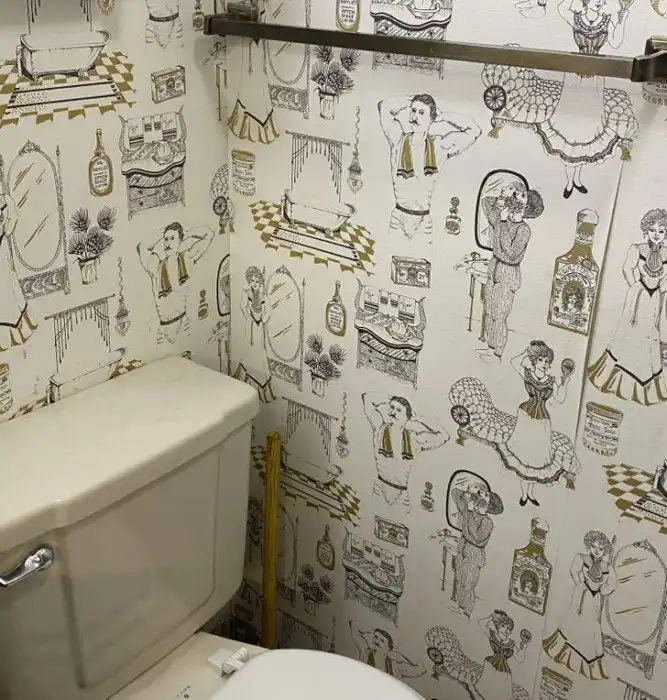 «В ванной комнате в моем новом доме наклеены обои вот с таким рисунком»
