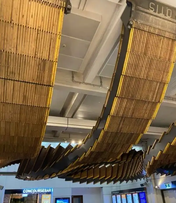 На железнодорожной станции Виньярд в Сиднее старые эскалаторы теперь свисают с потолка