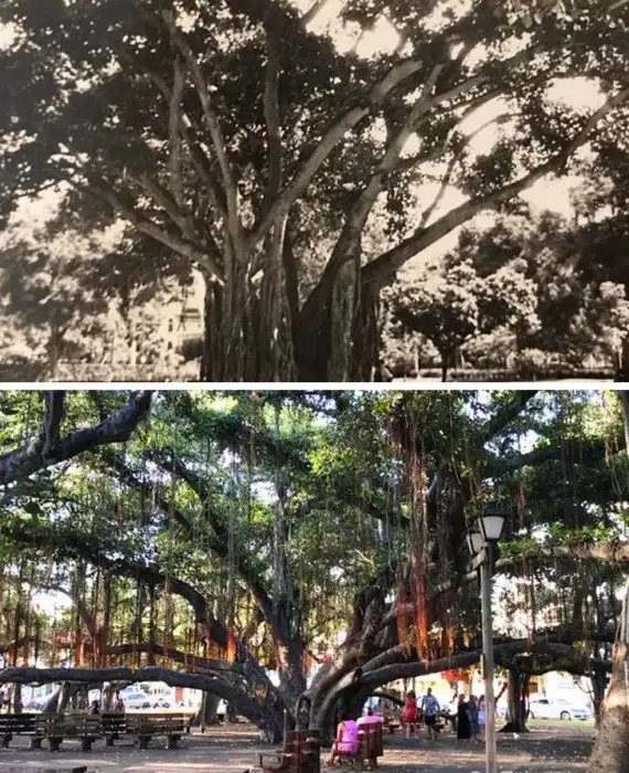 4. «В 40-х годах мой дед сделал фото баньяна на Мауи. Спустя много лет я сфотографировал то же самое дерево»