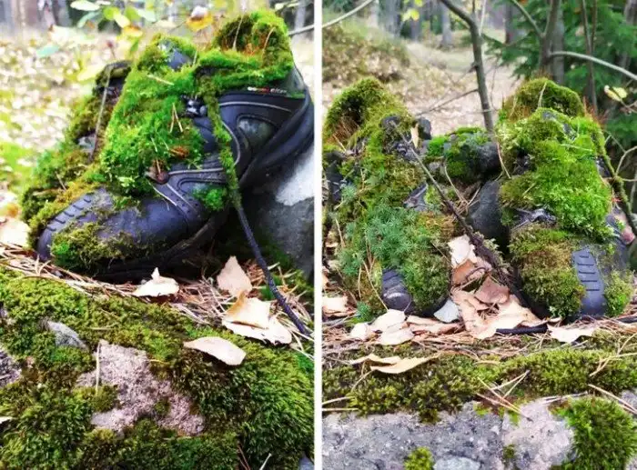 14. Кто-то оставил кроссовки в лесу, теперь они — часть этого леса