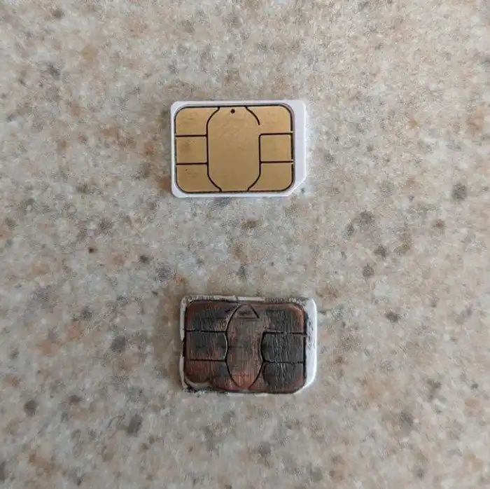 22. «Пришел клиент и сказал, что его телефон не распознает сим-карту, хотя она внутри. Я все понял, когда достал симку из телефона. Новая карта — для сравнения»