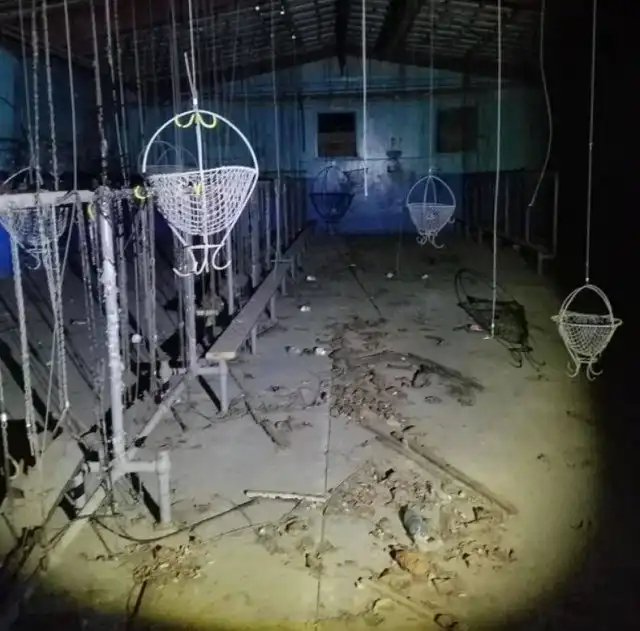 Корзины для личных вещей шахтеров. Работники складывали в них свои вещи, после чего корзины поднимались наверх.