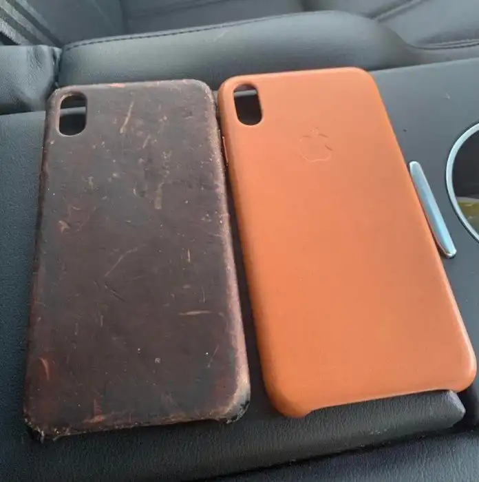 9. Кожаный чехол, использовавшийся в течение двух лет, и новый