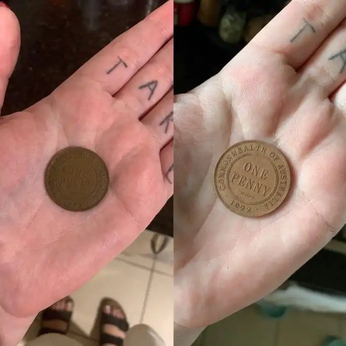 4. Вот что стало с монетой, найденной на заденем дворе, после того, как её оставили в стакане с колой на 8 часов