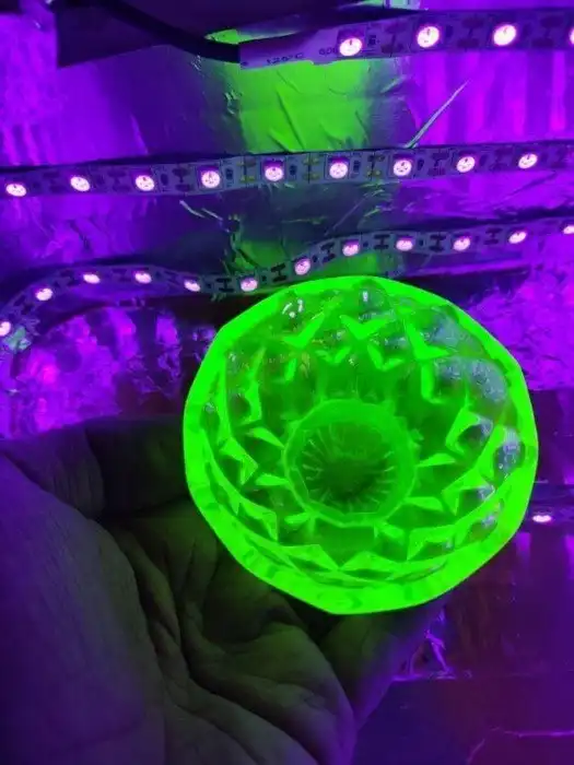 16. Вот что происходит с урановым стеклом под лампой чёрного света