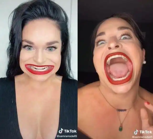Саманта Рамсделл - 30-летняя менеджер по продажам из Коннектикута. На первый взгляд Саманта ничем особенно не выделяется, но стоит ей улыбнуться или зевнуть, народ сразу же начинает удивлять. Дело в том, что у Саманты невероятно большой рот. Нет, дело не в том, что она много говорит. Просто ширина ее ротовой полости достигает 3,5 дюйма, а длина - почти 4 дюйма (8,8 и 10 сантиметров соответственно). Американка нисколечко не стесняется своей особенности.