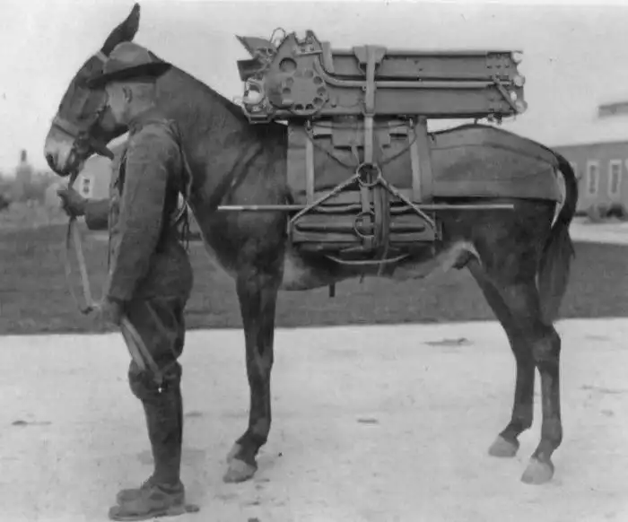 Перед Первой мировой войной было предпринято множество попыток сконструировать универсальное седло, чтобы любая часть оборудования могла быть загружена на любого мула.