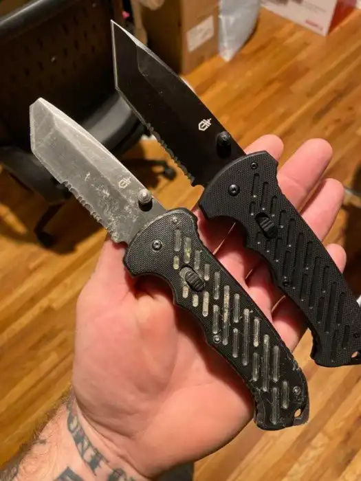 Это одинаковые ножи, только левым пользовались 9 лет, а правый — новый