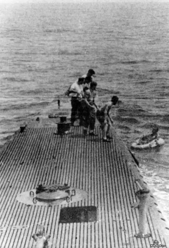 Американская подводная лодка спасает сбитого японцами своего летчика – будущего президента Джорджа Буша-старшего, 1944 год.
