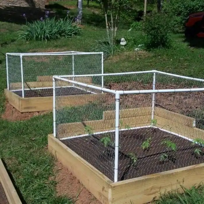 Выезжая на дачу невозможно не взять с собой домашних питомцев. Но некоторые собаки слишком любят разрывать грядки, и чтобы сохранить урожай, можно сделать простое ограждение из труб и сетки.