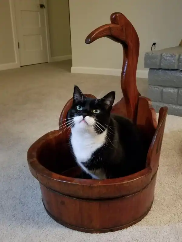 14. Какая-то странная миска в виде гуся. Не знаю, что это, но кот в восторге