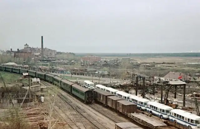 Автобусы ЛиАЗ грузят на железнодорожный транспорт, 1962.