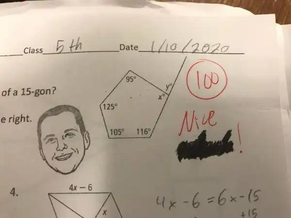 У учителя математики есть печать с его лицом для тех, кто хорошо написал тест