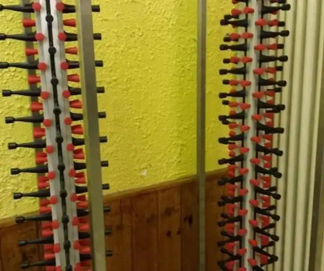 Стойки для выездного питания - тарелки крепятся между черными и красными штырями.